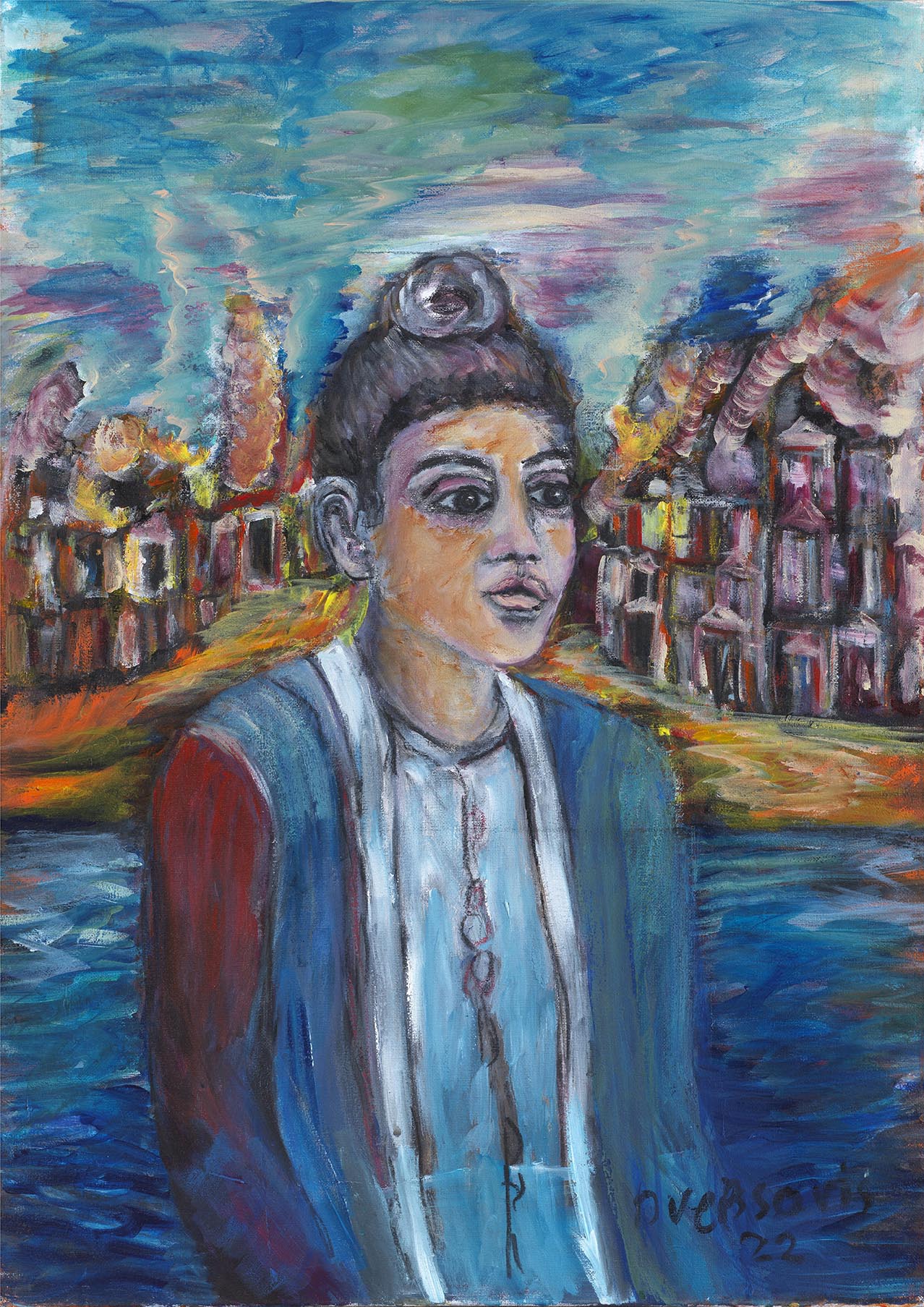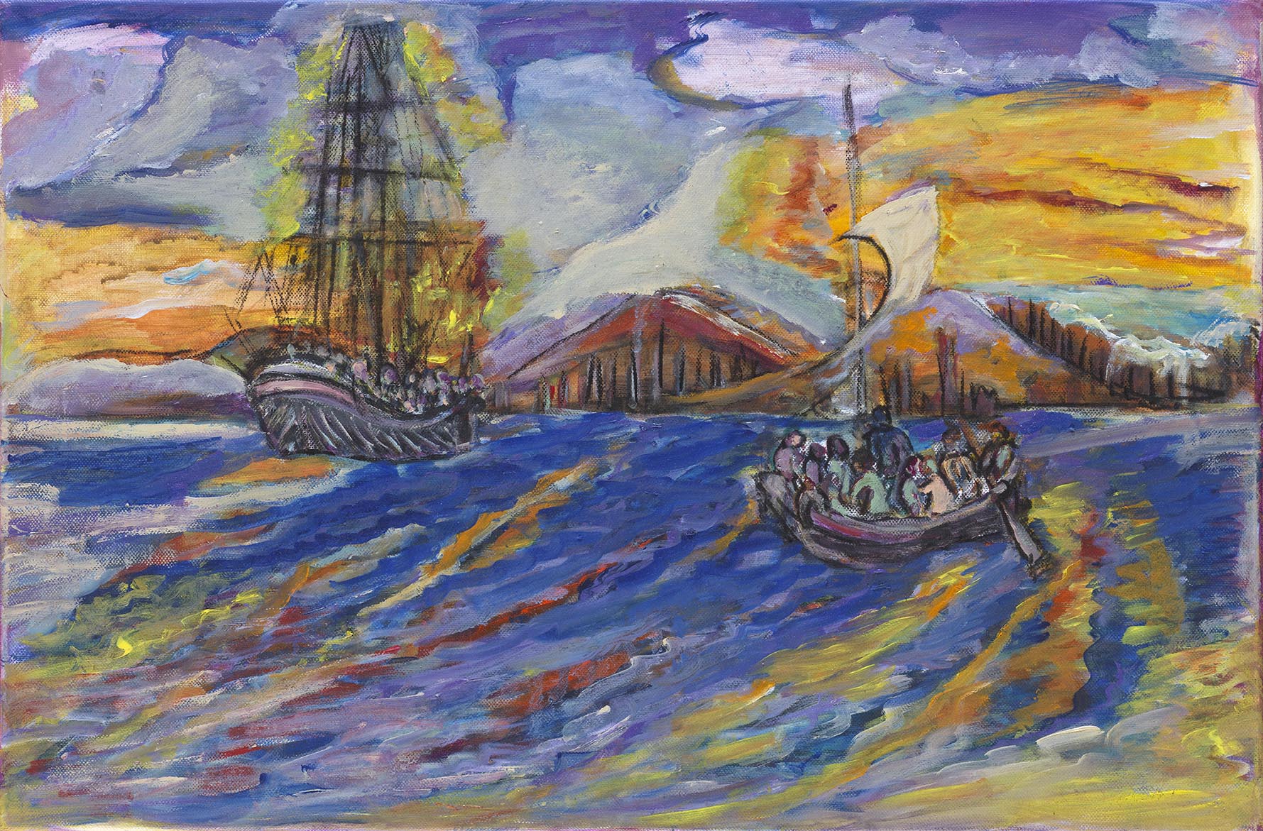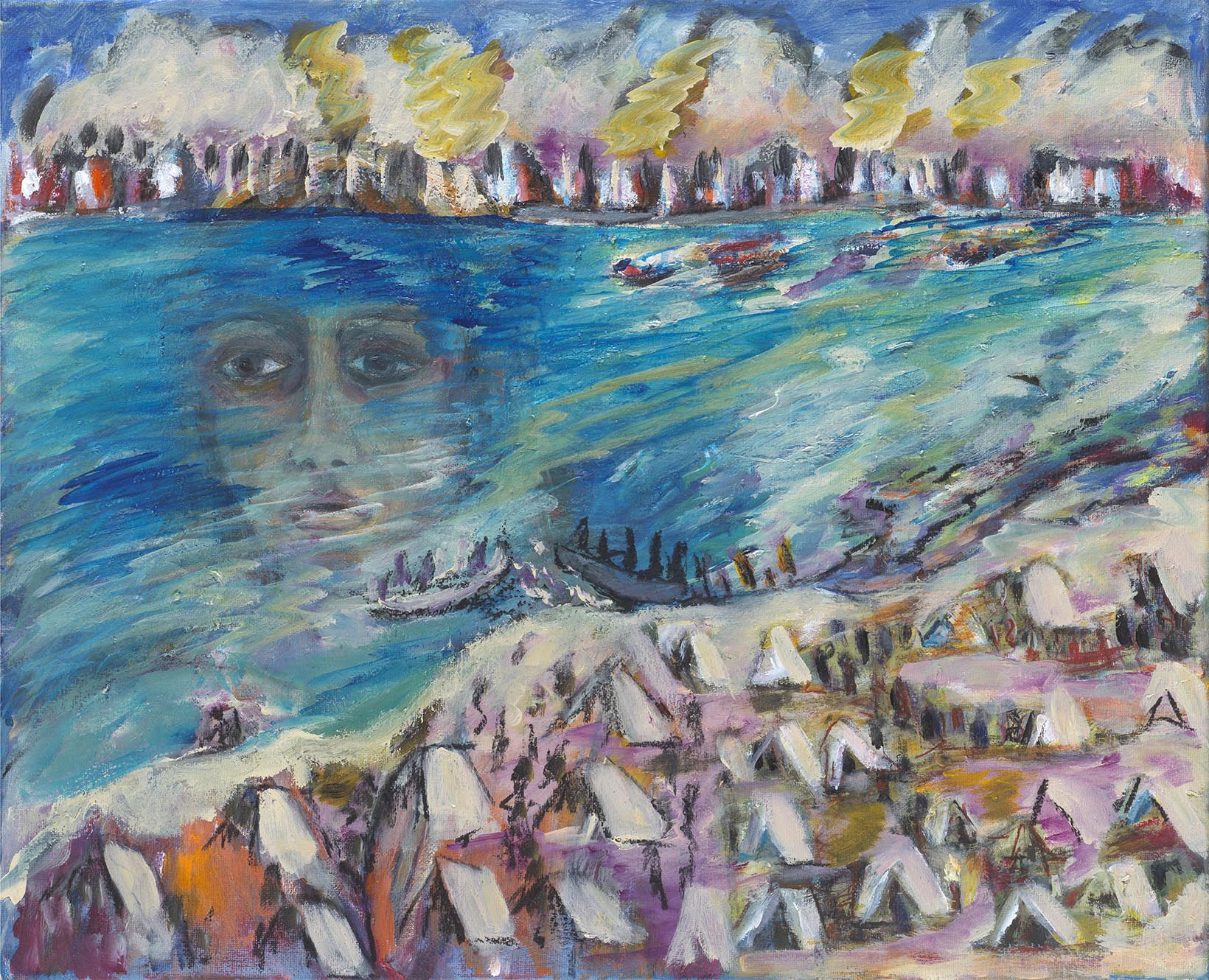 Ένα άλλο χαρακτηριστικό της ανθρωποκεντρικής ζωγραφικής της είναι η διαφορετική κλίμακα ανάμεσα στα μοτίβα του ίδιου πίνακα. Αρκεί να προσέξει κανείς τα κατάφορτα πλεούμενα που μια γυναίκα μπορεί να κρατήσει στην αγκαλιά της. Η μικρογραφική απόδοσή τους που παραπέμπει στην παιδική και ναΐφ ζωγραφική τονίζει τη μνημειακότητα των γυναικείων μορφών, οι οποίες ανυψώνονται σε ηρωίδες. Το βαρύ κλίμα που επικρατεί στους περισσότερους πίνακες φαιδρύνουν μνημειακές γυναικείες φιγούρες που αναπολούν όσα μόλις διάβασαν ή μοιρολογούν με τη μουσική τους τις χαμένες πατρίδες .