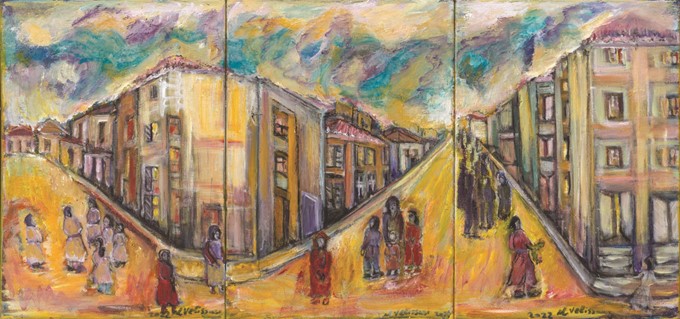 Ενα εικαστικό ταξίδι από τη Σμύρνη στη Γάζα, που σκοπό έχει να εγείρει τη συλλογική μνήμη, αποτυπώνοντάς την στη σύγχρονη επικαιρότητα, παρουσιάζεται στην έκθεση ζωγραφικής της Δήμητρας Βελισσάρη με τίτλο Προσφυγιά, στο Ιδρυμα Μιχάλης Κακογιάννης από τις 24 έως τις 7 Φεβρουαρίου 2025.