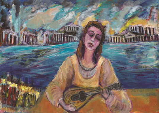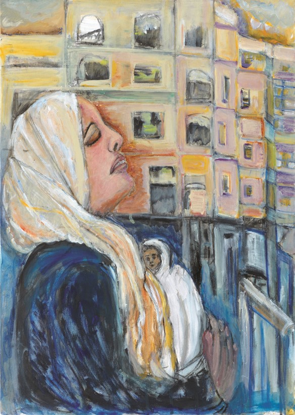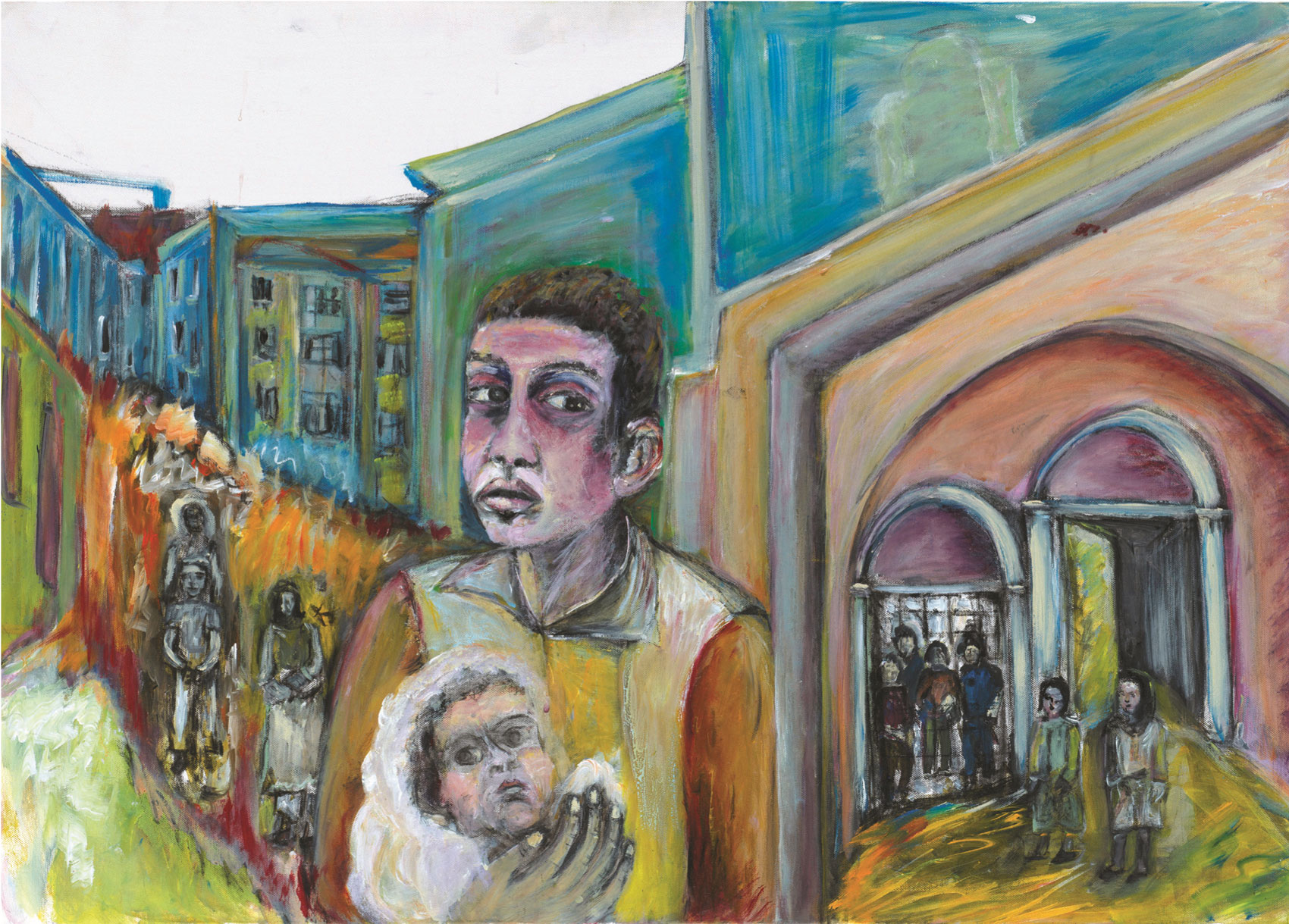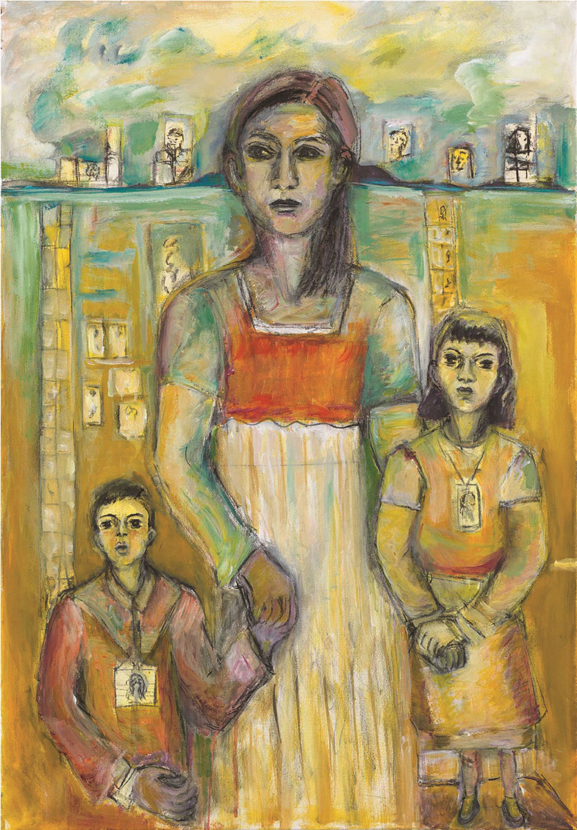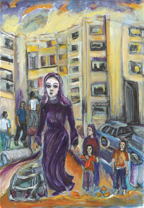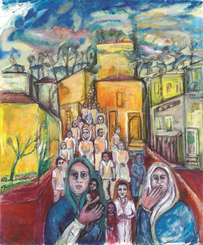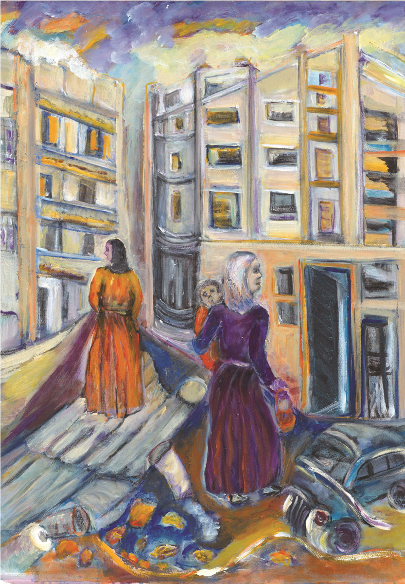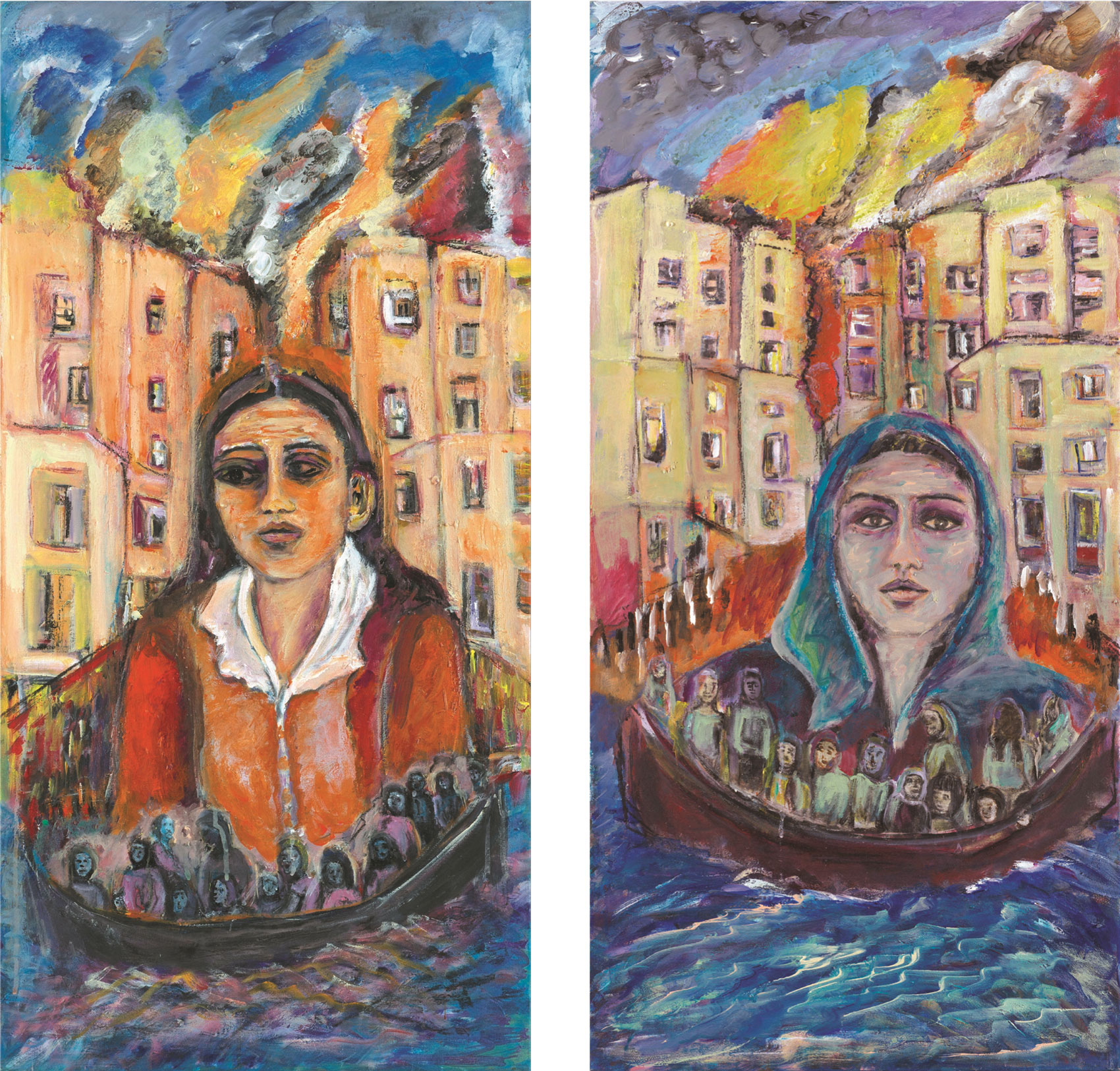 Με αφορμή τη συμπλήρωση 100 χρόνων από την Καταστροφή της Σμύρνης και τα πρόσφατα γεγονότα στη Λωρίδα της Γάζας η ζωγράφος επεξεργάζεται το θέμα της προσφυγιάς με αναφορές και στις συνέπειες της τουρκικής εισβολής στην Κύπρο το 1974, επιχειρώντας να υψώσει την αντιπολεμική κραυγή της.