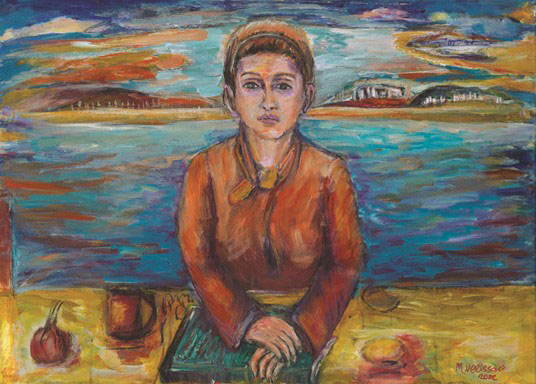 Ένα άλλο χαρακτηριστικό της ανθρωποκεντρικής ζωγραφικής της είναι η διαφορετική κλίμακα ανάμεσα στα μοτίβα του ίδιου πίνακα. Αρκεί να προσέξει κανείς τα κατάφορτα πλεούμενα που μια γυναίκα μπορεί να τα κρατήσει στην αγκαλιά της. Η μικρογραφική απόδοσή τους, που παραπέμπει στην παιδική και ναΐφ ζωγραφική, τονίζει τη μνημειακότητα των γυναικείων μορφών, οι οποίες ανυψώνονται σε ηρωίδες και προβάλλονται ως σύμβολα. Το βαρύ κλίμα που επικρατεί στους περισσότερους πίνακες φαιδρύνουν μνημειακές γυναικείες φιγούρες που αναπολούν όσα μόλις διάβασαν ή μοιρολογούν με τη μουσική τους τις χαμένες πατρίδες (Πίν. 3).