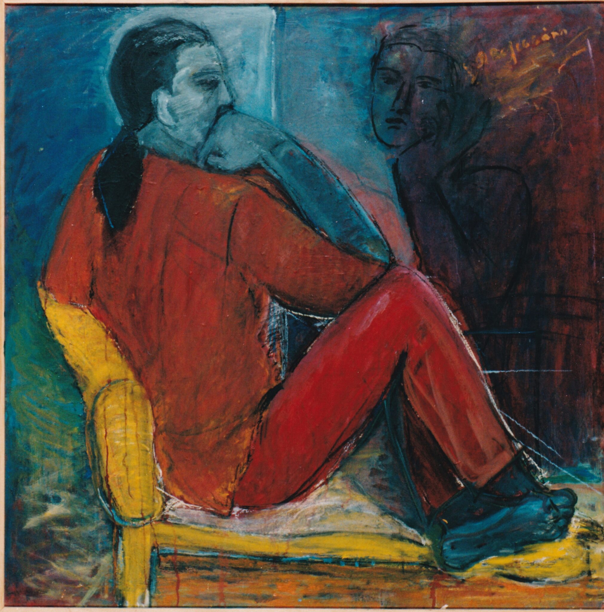 Φιγούρα σε κόκκκινο φόντο, λάδι, 140 Χ 100 εκ.